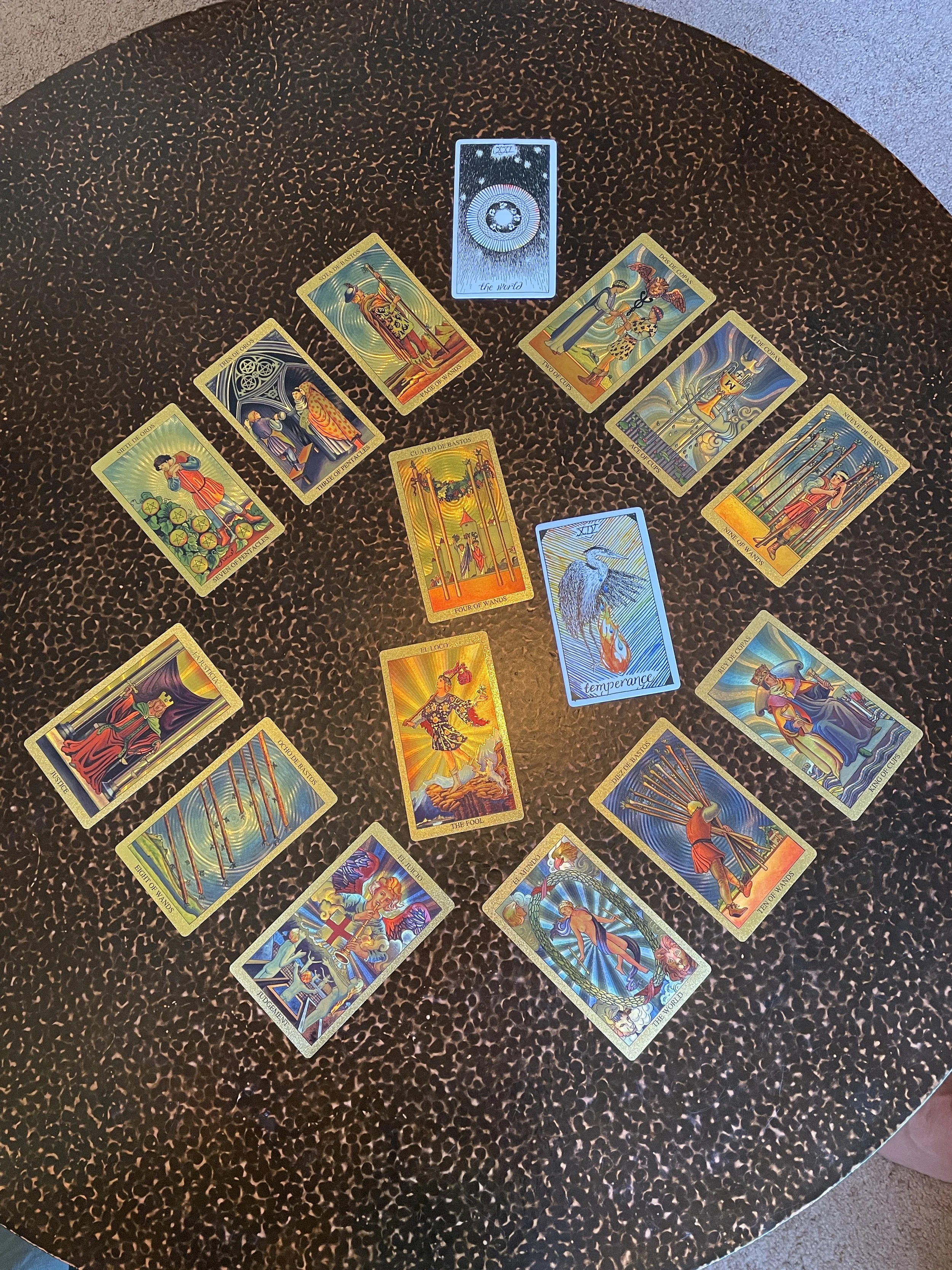 This is a panoramic reading that reveals the emotional, energetic, and spiritual themes shaping your next twelve months. We’ll draw one card for each month — offering insight into the cycles of growth, challenge, and opportunity ahead — along with a central Soul Key card that holds the deeper lesson or guiding archetype for your year. (Clarifying Cards may be drawn to probe deeper)